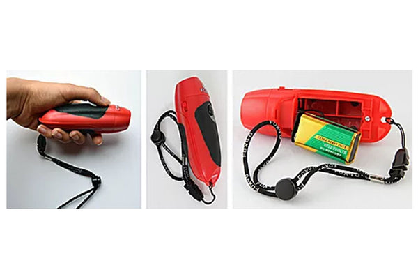Includes a detachable wrist lanyard and 9-volt battery
