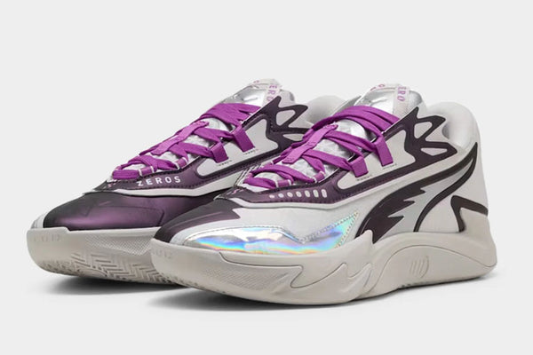 The Puma Zeros Scoot II "Sterling" is built for those who play fast and stay locked in. Featuring iconic 'S' branding across the upper, this performance-driven sneaker blends speed, stability, and style. Holographic overlay panels add a futuristic edge, while the fast eyeleting lacing system and lockdown webbing ensure a secure, responsive fit. Mixed technologies in the midsole work together to deliver maximum comfort and explosive energy return, keeping you quick on your feet for a silhouette that brings both next-level performance and standout style.